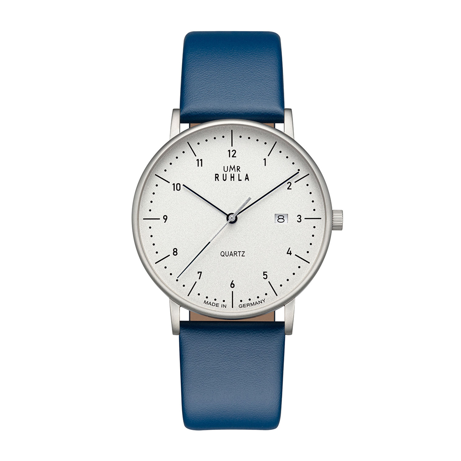 Produktinformationen "Uhren Manufaktur Ruhla - Armbanduhr Classic - silbernes Geh./weiß, blaues Lederband"