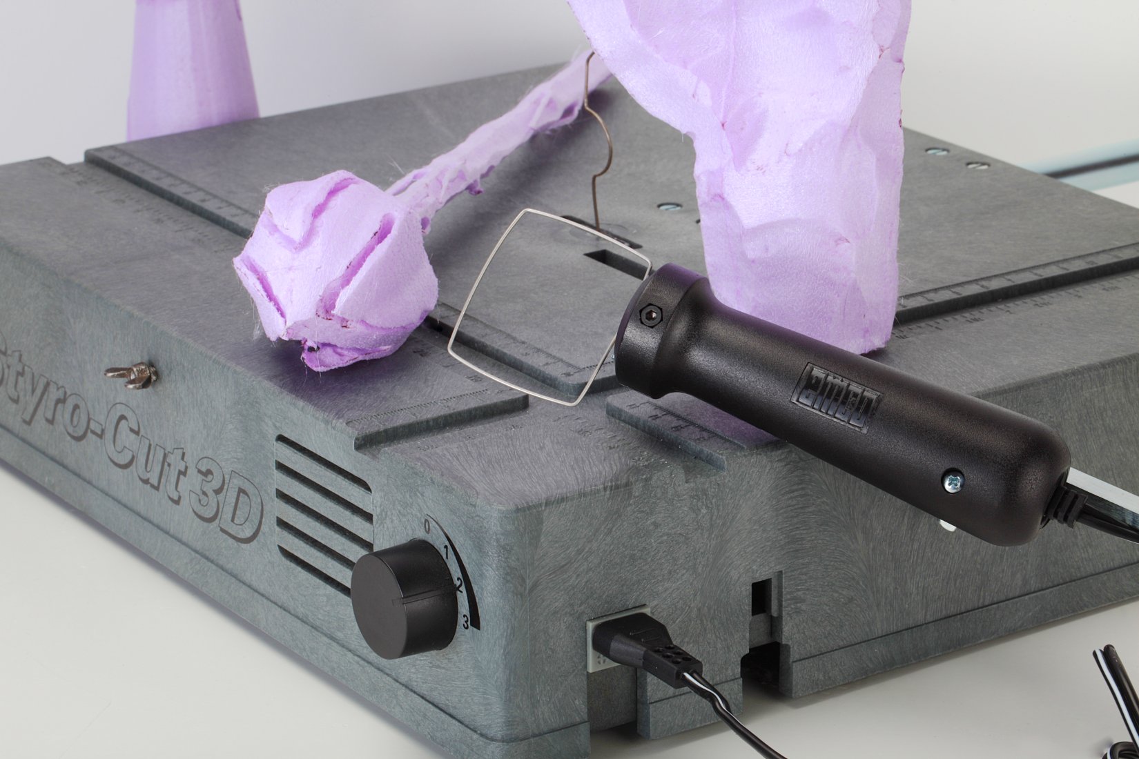 Styro-Cut 3D ist ein Schmelzschneidegerät zur thermischen Bearbeitung von Styropor und anderen Hartschaumstoffen (EPS, XPS, EPP).