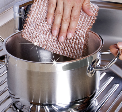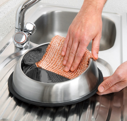 • Feinstes Rohkupfer- mit natürlicher antibakterieller Wirkung. Entfernt selbst hartnäckige Futterreste und Kalkränderohne