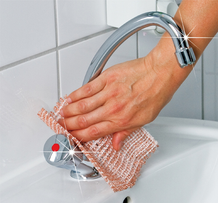 Hartnäckigen Schmutz entfernen ohne Kratzer. Mit antibakterieller Wirkung. Dank der doppellagigen Kupferfäden, entfernt dieses hochwertige Kupfertuch selbst hartnäckigen Schmutz wie Eingebranntes und Rost. Reinigt extra gründlich, sauber und oberflächenschonend. Feinstes Reinkupfer verwirkt mit Sicherheitsfäden (aus Polyamid). Universal einsetzbar. Für Edelstahl, Glaskeramik und Porzellan (Töpfe, Pfannen, Spüle, Herd etc.). Entfernt auch Rost am Fahrrad. Besonders langlebig. Rostfrei und auswaschbar.