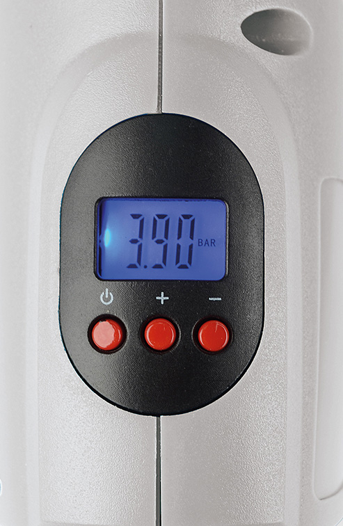 Eine LC-Anzeige zeigt den Druck in PSI, kPa und bar an.