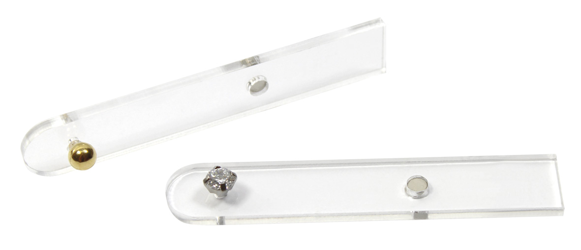 Die magnetischen Kunststoffträger mit den Ohrsteckern lassen sich leicht aus dem Display herausnehmen und ans Ohr halten. Eine tolle Möglichkeit, Ohrringe "anzuprobieren".