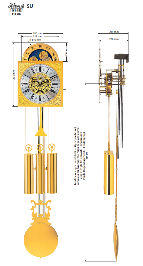 Produktinformationen "Standuhrwerk SU Hermle, 7-Tage, Pendellänge 114 cm, mit Umschaltschlagwerk"