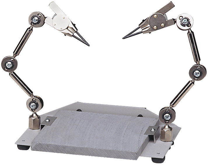 Enthält 2 dreigelenkige dritte Hände sowie einquadratisches (150 mm) Lötbrett.