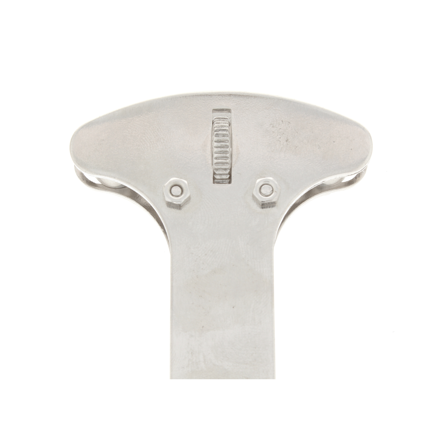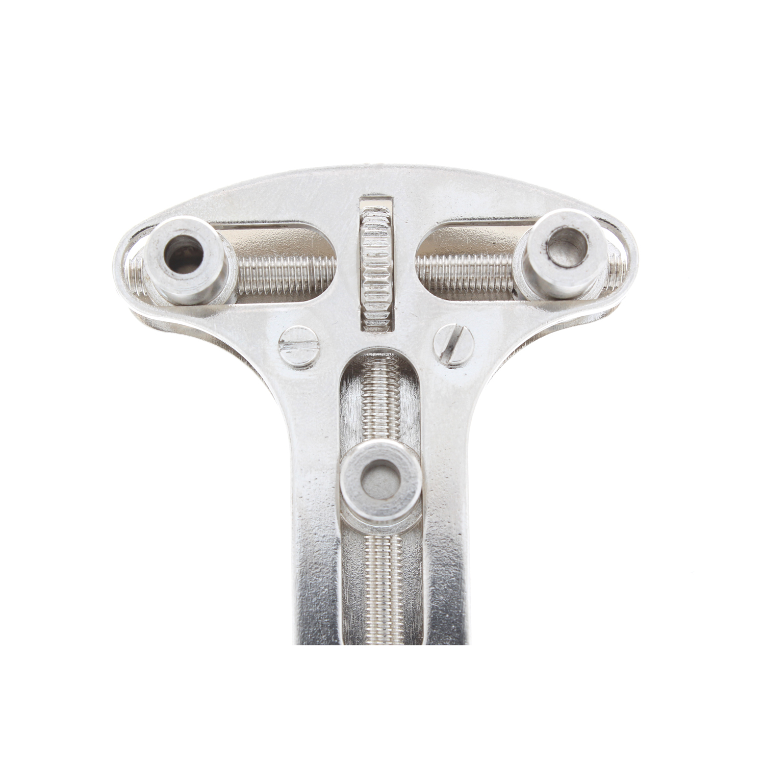 Zur Fixierung in der Gehäuseaussparung sind 3 verstellbare Spannbacken über den Handgriff bzw. eine Rändelmutter einstellbar.