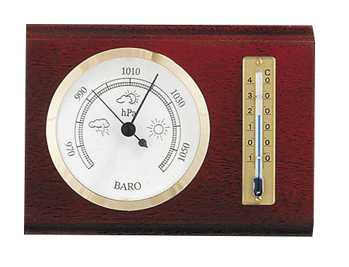 Barometer mit Thermometer aus Mahagoni (Thermometer mit Buche-Einsatz)