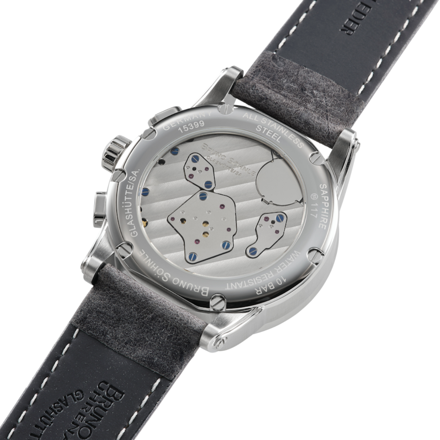 • Uhrwerk: Quarzwerk in veredelter BS-Version (Ronda 8040.N)