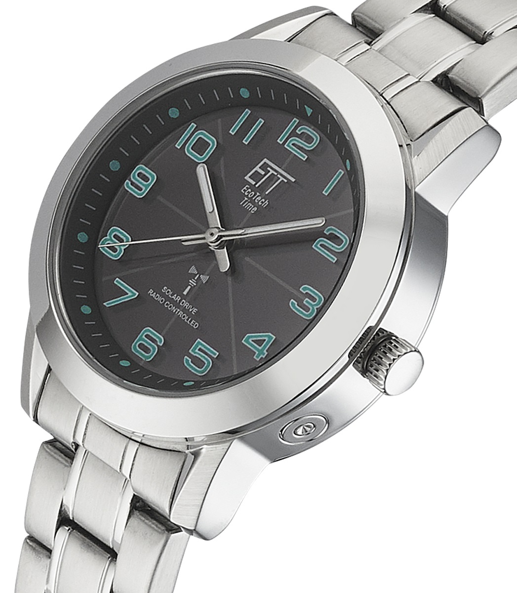 Die ETT Damenuhr, Solar Drive Funk Basic ELS-11504-22M, mit Metallband überzeugt mit ihrem sportlichen Design. Automatische Umstellung von Sommer-und Winterzeit. Dank Solar Funk Antrieb geht die ETT Solar Drive Funk Uhr stets genau und benötigt keinen Batteriewechsel. Ausgestattet ist sie mit einem schwarzen Zifferblatt und ist wasserdicht bis 5 bar.