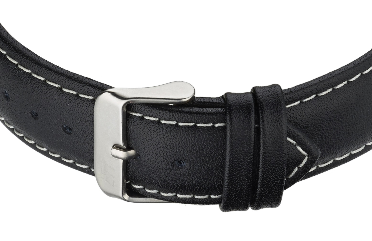 Sportliche Herrenuhr mit Edelstahlgehäuse im Titanlook und Lederarmband. Diese Uhr ist bis 10 bar wasserdicht und bietet eine Beleuchtungsfunktion.