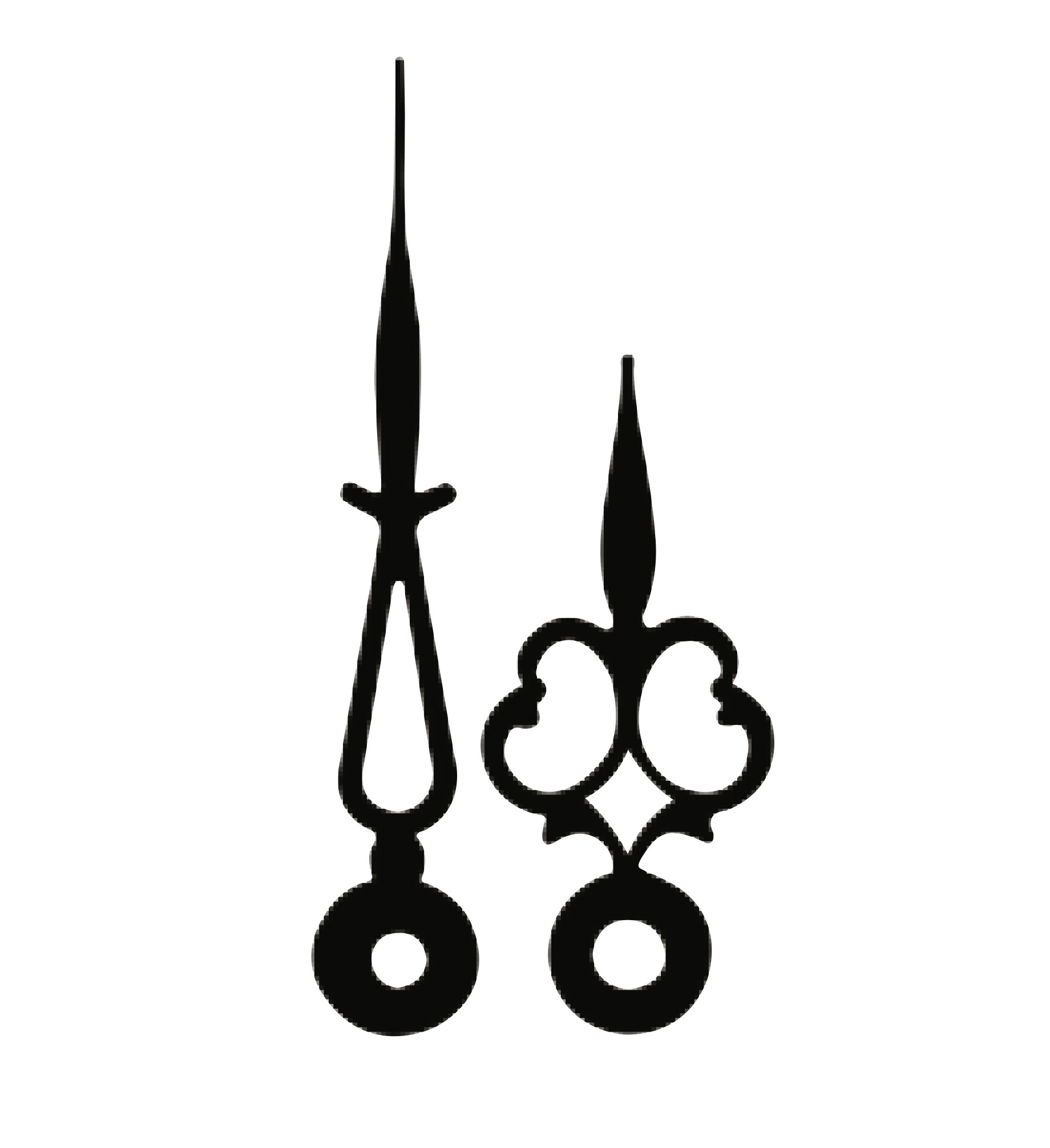 Produktinformationen "Zeigerpaar für Mechanische Antik schwarz matt Minutenzeiger-L:41mm Std.-Z.-Ø:4,5 Min.-Z.-Ø:2x2"