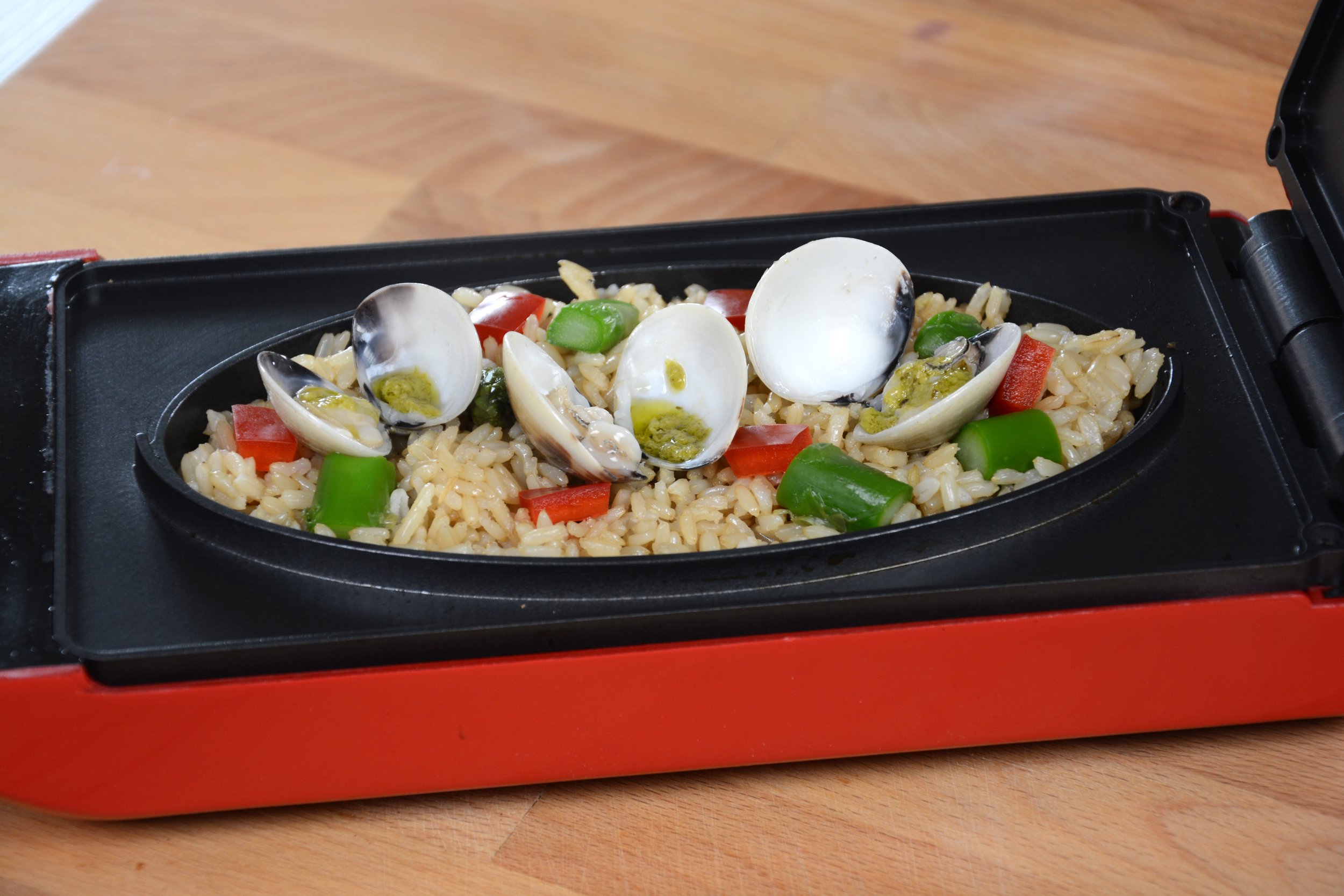 • Die Platten heizen sich auf und garen die mittig, im Hohlraum plazierten Speisen.
