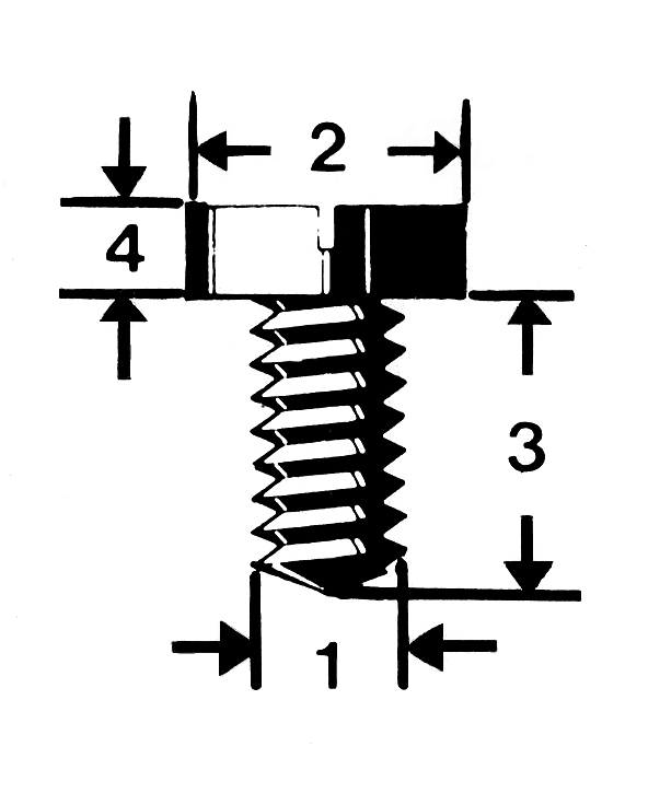 Ankerklobenschraube Stahl V1514 Gewinde Ø 0,65 Kopf Ø 1,20 Länge 1,25 Kopf Höhe 0,35mm