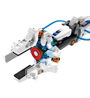 Der Roboterarm arbeitet in einem Radius von 41,5 cm, in einer Höhe von bis zu 31,5 cm und kann ein Gewicht von bis zu 50 g heben und fortbewegen.