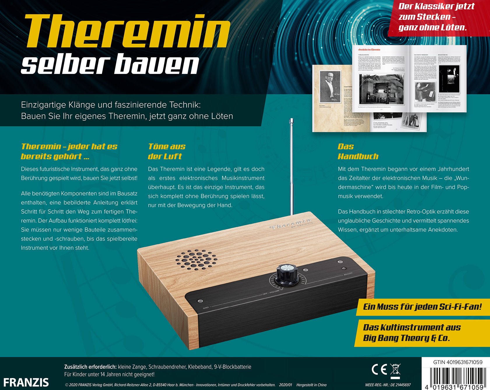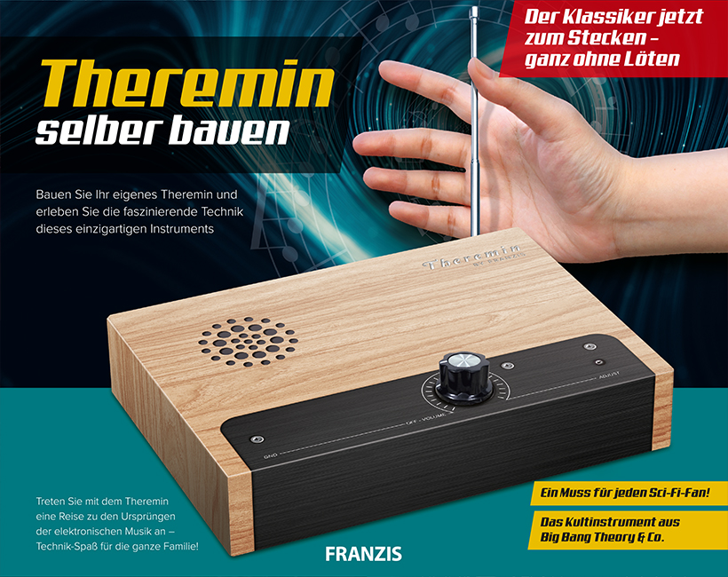 Was haben Led Zeppelins „Whole Lotta Love", „Good Vibrations" von den Beach Boys und die Titelmusik der Krimiserie „Inspector Barnaby" („Midsomer Murders") gemeinsam? In allen diesen Stücken erklingt ein Theremin. Das futuristische Instrument, das ganz ohne Berührung gespielt wird, bauen Sie jetzt selbst! Alle benötigten Komponenten sind im Bausatz enthalten, eine ausführliche Anleitung erklärt Schritt für Schritt den Weg zum Erfolg.