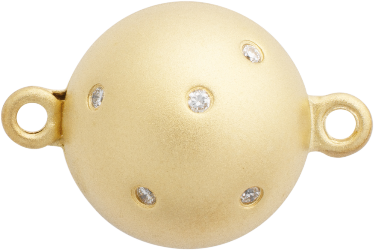 Kugelförmige Magnetschließen gehören zu den klassischsten Ersatzteilen für Halsketten und Armbänder. Die dezente Schließe gibt es derweil in vielfältigsten Ausführungen. Für jeden Geschmack ist die passende Schließe dabei: Kugeln aus Edelsteinsynthese, Silber, Gold oder Palladium und auch Kugeln mit Besatz lassen keine Wünsche offen.