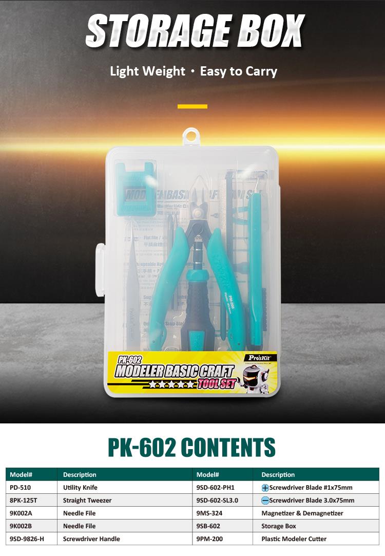 Werkzeugset für den Modlelbau in praktischer Aufbewahrungsbox für leichten Transport.