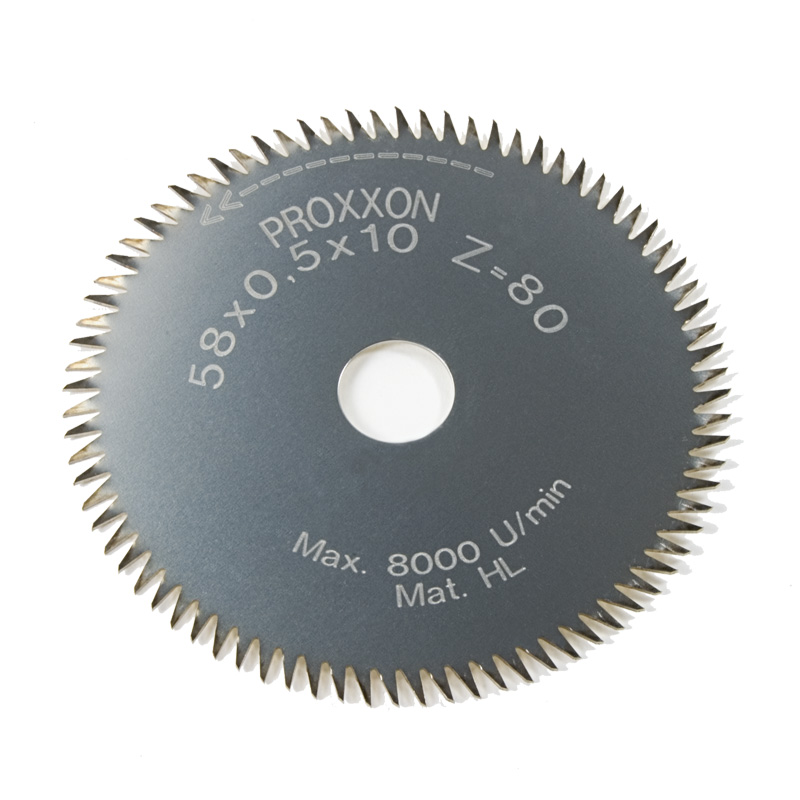 Das PROXXON Kreissägeblatt "Super-Cut" verfügt über eine Wechselzahnung 80 Z.