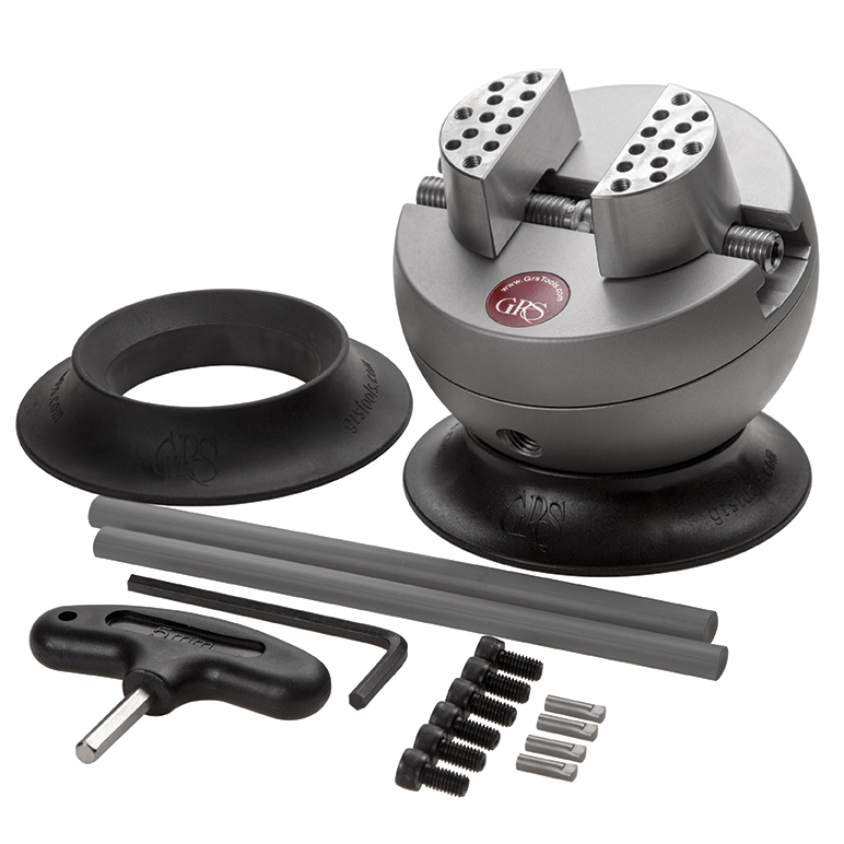 Er ist jetzt schwerer und verfügt über mehr Funktionalität. Der neue MicroBlock XL ist eine 3,1 kg schwere Gravierkugel mit 100 mm Kugeldurchmesser. Damit bietet er die perfekte Größe zwischen GRS MicroBlock und GRS Standard Block. Da der MicroBlock XL die gleichen Haltebacken nutzt wie der MicroBlock, ist er mit allen MicroBlock-Haltewerkzeugen kompatibel. Er wird zudem mit zwei Sockeln geliefert, einem Kunststoff- und einem Gummisockel, die eine präzisere Kontrolle ermöglichen. Die kleine und bewegliche Gravierkugel eignet sich perfekt für das Fassen von Steinen, kleine bis mittelgroße Gravuren und andere Präzisionsarbeiten.