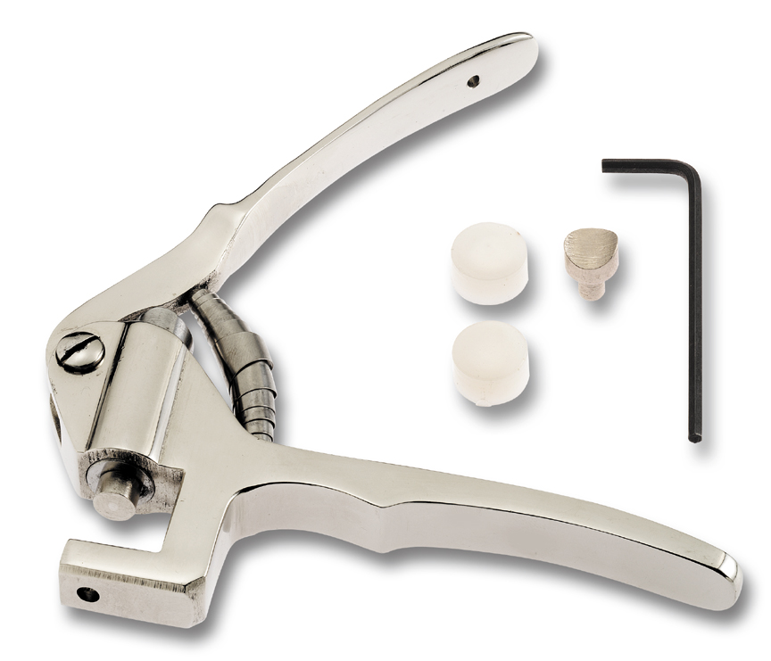 Zum einfachen Prägen der Feingehaltsangaben auf Schmuckstücken, mit je 1 Haltestempel (Metall und Kunststoff) mit planer und konkaver Oberfläche.