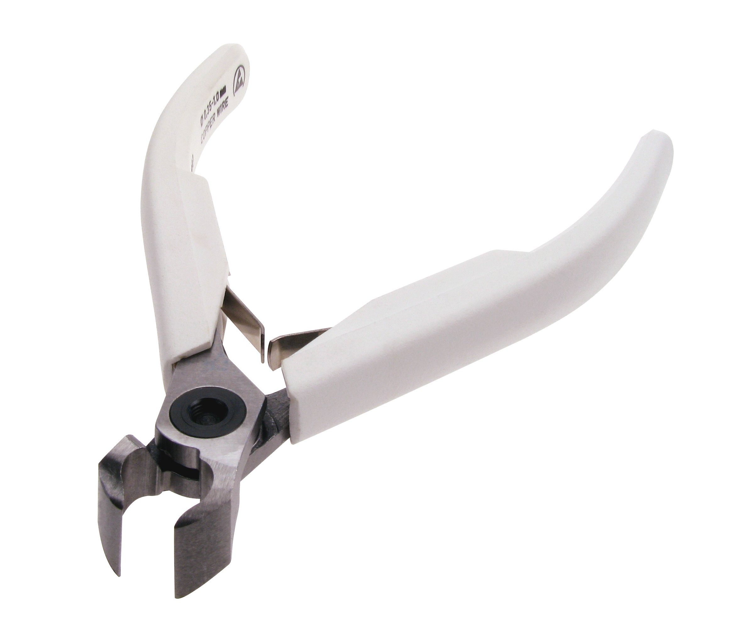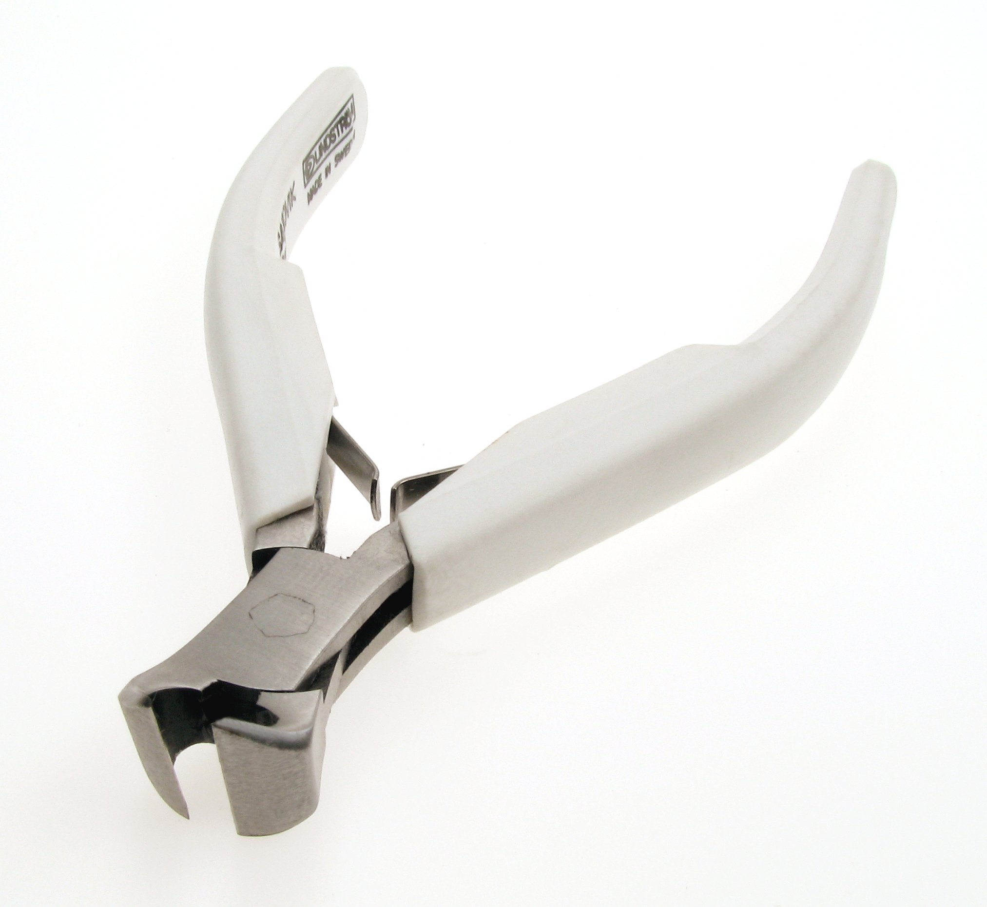 Spezialstahl mit gehärteten Schneiden. Kunststoffüberzogene Griffe. Die Zange wird durch die in den PVC-Überzug eingesetzten Blattfedern automatisch geöffnet. Feinste Verarbeitung.