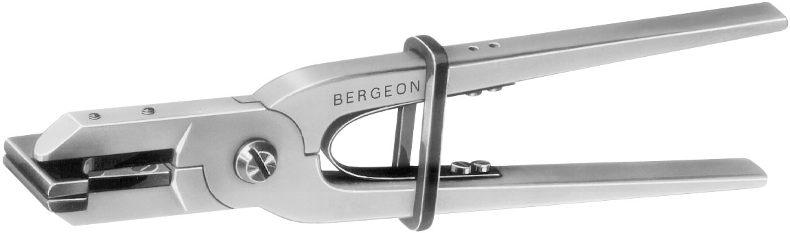 Aus Aluminiumguss. Zange zum Ausstoßen der Drücker und Korrektoren in Uhrgehäusen. Mit regulierbarem Anschlag und 3 Punzen (5 - 8 - 12 mm)