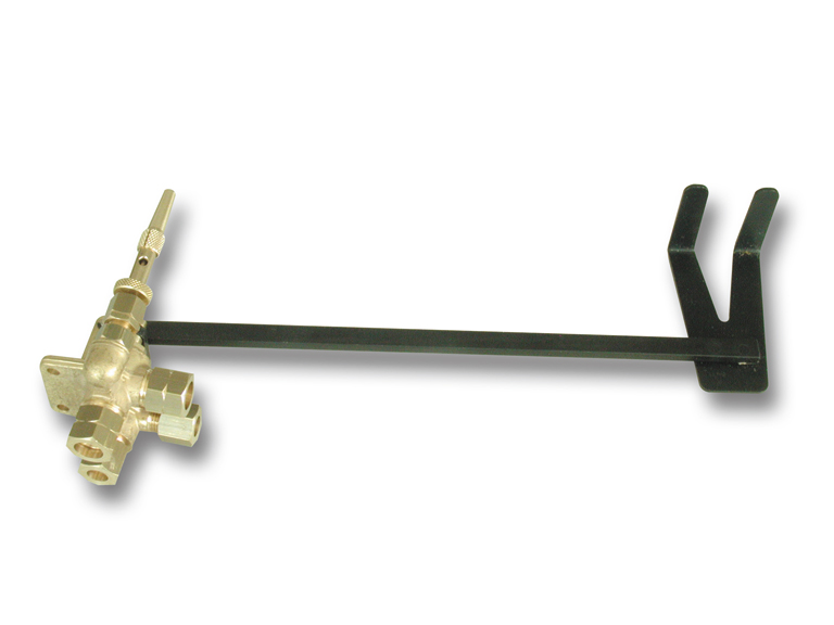 Mit Einhängehalterung für Brenner. Automatische Unterbrechung der Gaszufuhr durch Einhängen des Brenners in die Gabel, keine Neueinstellung beim Abhängen mehr nötig, Propan / Sauerstoff Ausführung, einstellbare Zündflamme.