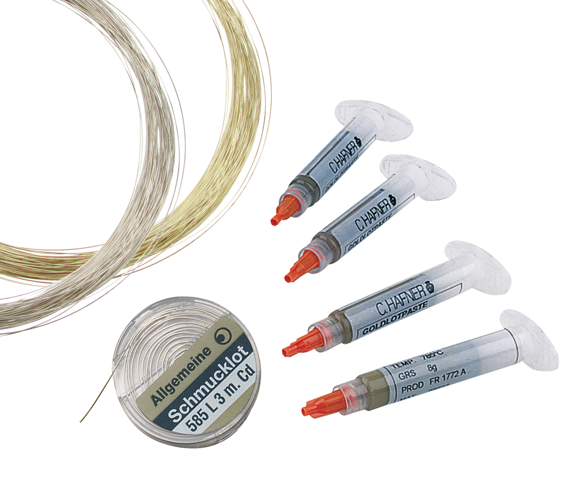 Z.B. Degussa. Die Lotspule wird auf das Ende des Lotspenders aufgesteckt. Durch Drehen der Transporträder schiebt man die gewünschte Lotmenge an die Spitze. Pro Lotart ein Lotspender, erspart das Wechseln des Lotes. Lotspender ohne Lotspule.