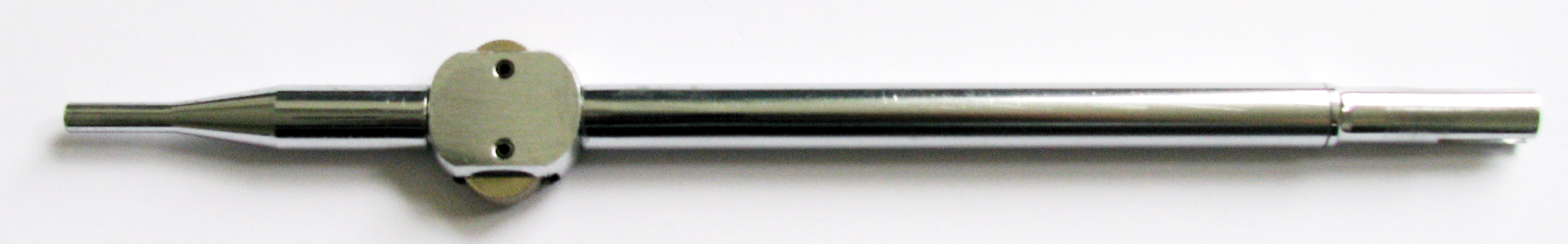 Z.B. Degussa. Die Lotspule wird auf das Ende des Lotspenders aufgesteckt. Durch Drehen der Transporträder schiebt man die gewünschte Lotmenge an die Spitze. Pro Lotart ein Lotspender, erspart das Wechseln des Lotes. Lotspender ohne Lotspule.