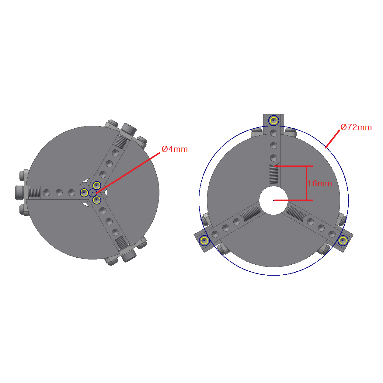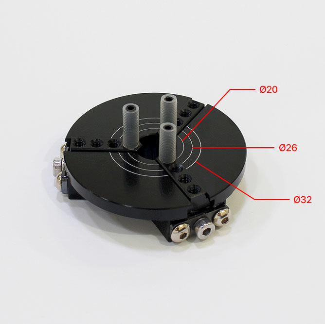 Die LMC-164 sorgt für eine stabile Klemmung für unregelmäßig/ unsymetrisch geformte Ringe oder Siegelringe, und eignet sich daher für präzise Innen- und Außenmarkierungen. Die Backen kann msn individuell enstellen, um somit nicht symetrische/ andere Formen zu fixieren.