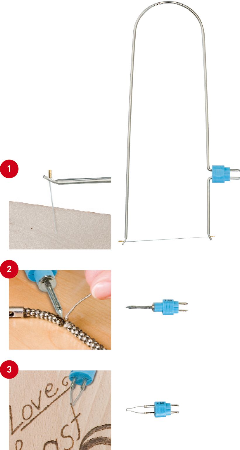 Allie le plaisir de la pyrogravure, du soudage et du polystyrène en une unité ! Il suffit de modifier les embouts de l’appareil de base !