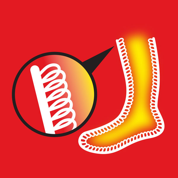Les chaussettes fonctionnelles en fil isolant avancé sont tricotées à l'extérieur et ont un molleton moelleux à poils longs à l'intérieur pour un stockage maximal de la chaleur. Un large revers de confort garantit que les chaussettes sont extrêmement confortables à porter. Les chaussettes chauffantes sont idéales pour prévenir à tout moment les pieds et les orteils froids.