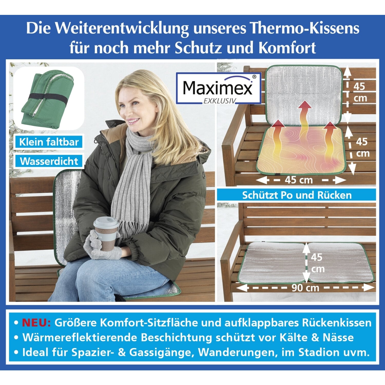 Unterkühlung, die auch schon mal eine Blasenentzündung verursachen kann, vorgebeugt. Warm und trocken – das komfortable Sitzerlebnis für alle Outdoor-Aktivitäten!