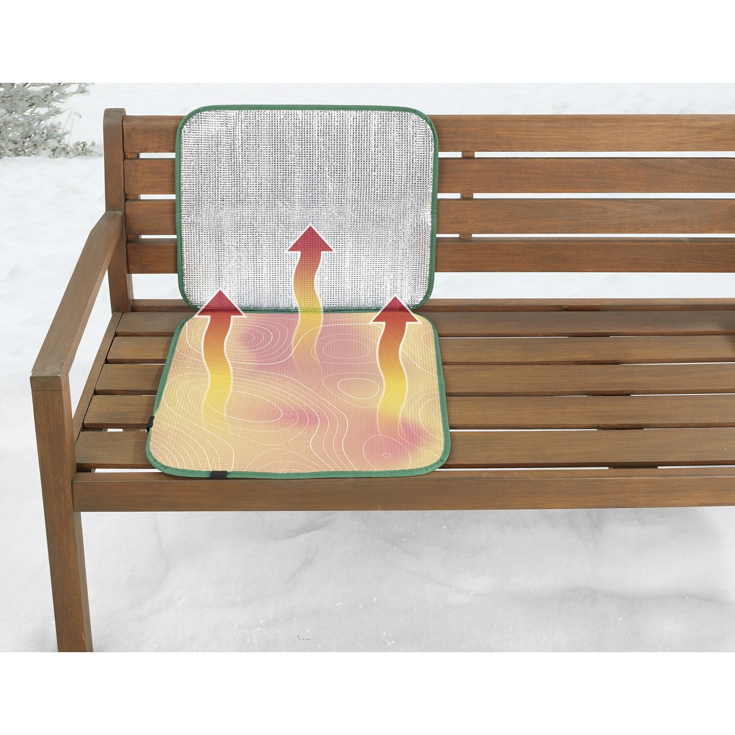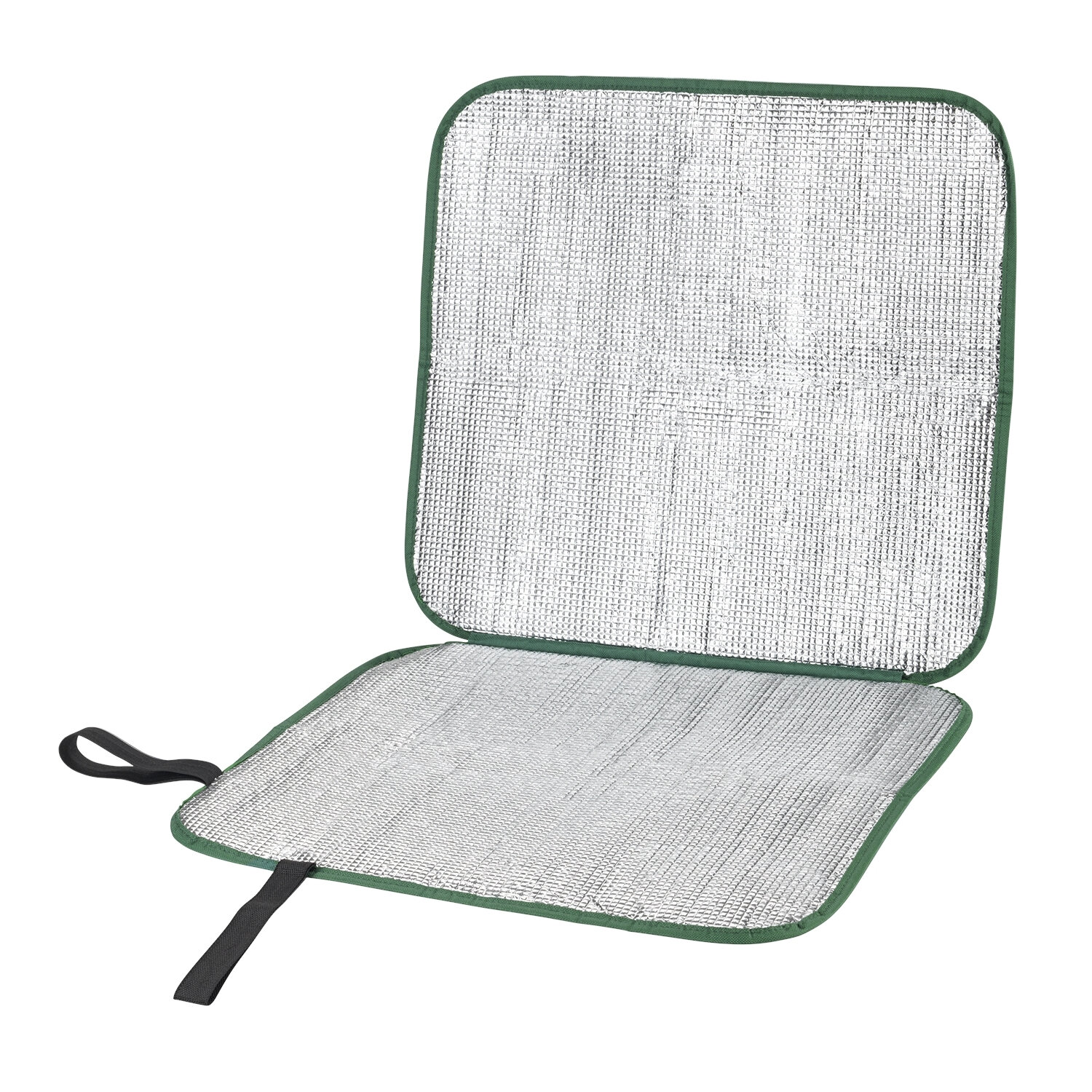 Aufgeklappt bietet es entweder Platz für zwei Personen oder hält – hochkant als Lehne - den Rücken warm und trocken. Zusammengeklappt verdoppelt sich nun der Isolationsschutz. Die Aluminium-Beschichtung reflektiert die eigene Körperwärme und ist 100 % wasserdicht.