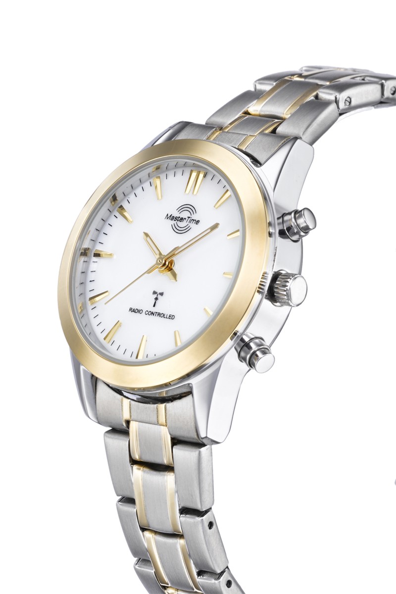Montre radiocommandée classique et élégante en acier inoxydable bicolore avec cadran blanc, étanche à 5 bar