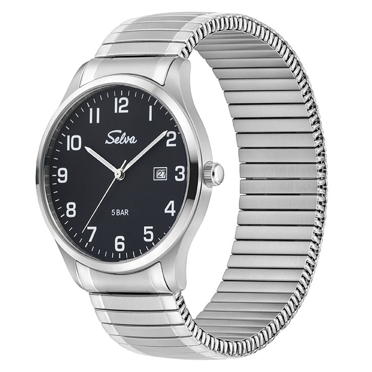 Informations sur le produit "SELVA montre-bracelet à quartz avec bande de traction cadran noir Ø 39mm"