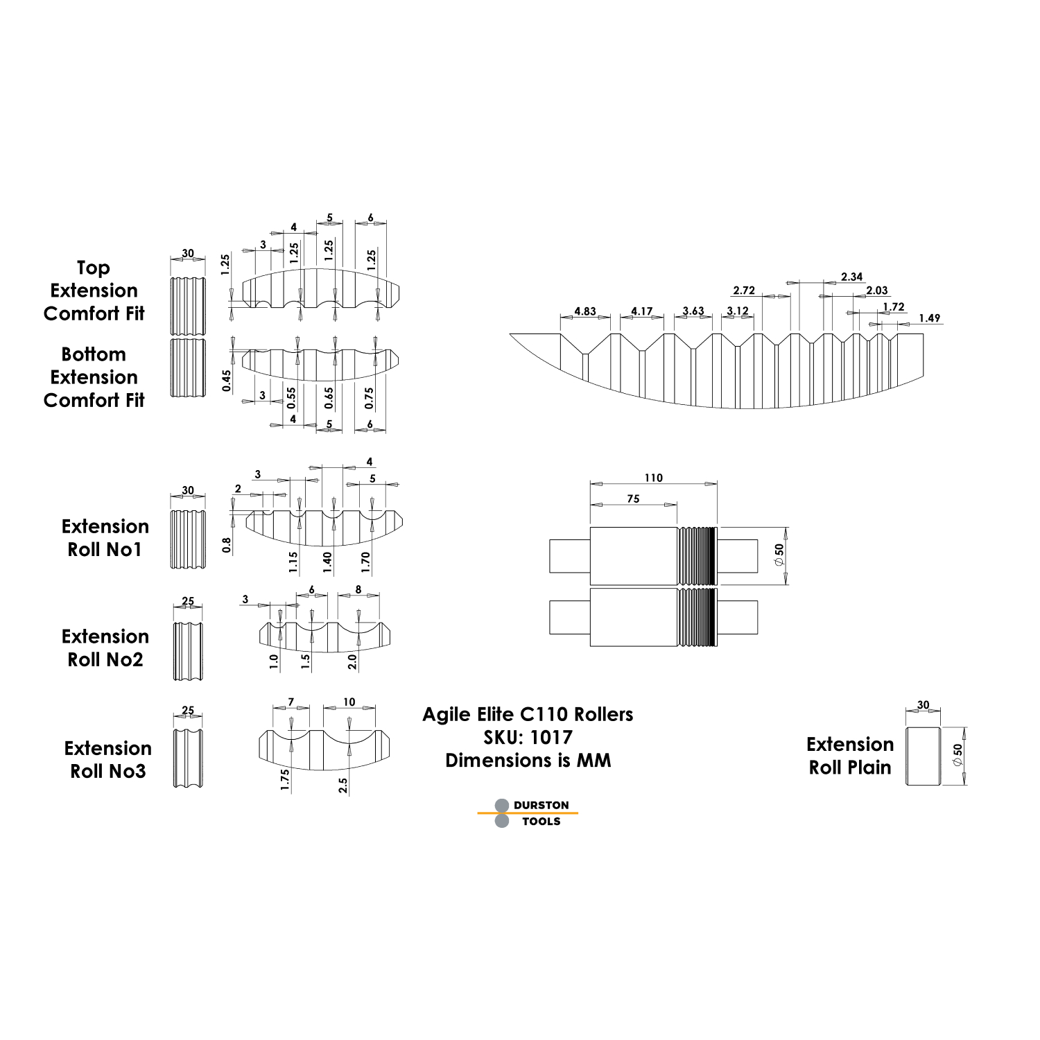 - Komfortable Verlängerungsrollen: Bereich von 3 mm bis 6 mm.