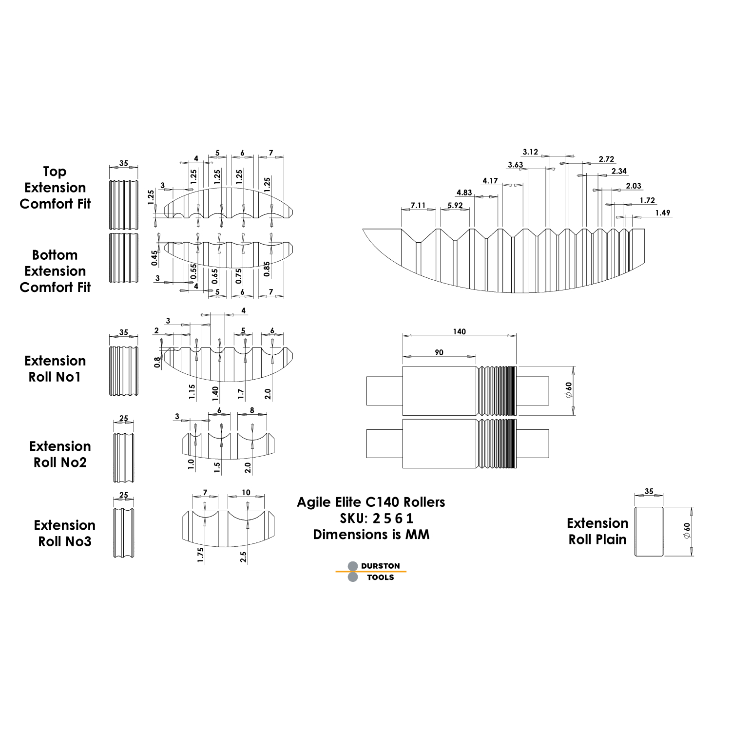 Zusätzlich zu diesen Funktionen wird der Agile Elite C140 mit einem kompletten Satz Verlängerungsrollen und Zubehör geliefert.
