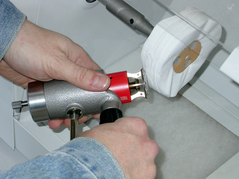 Werkzeug zum Halten von Uhrgehäusen, Gehäusedeckeln usw. Mit diesem Werkzeug können diese Teile mühelos beim Polieren gehalten werden. Einfaches Öffnen der Spannbacken durch Handhebel